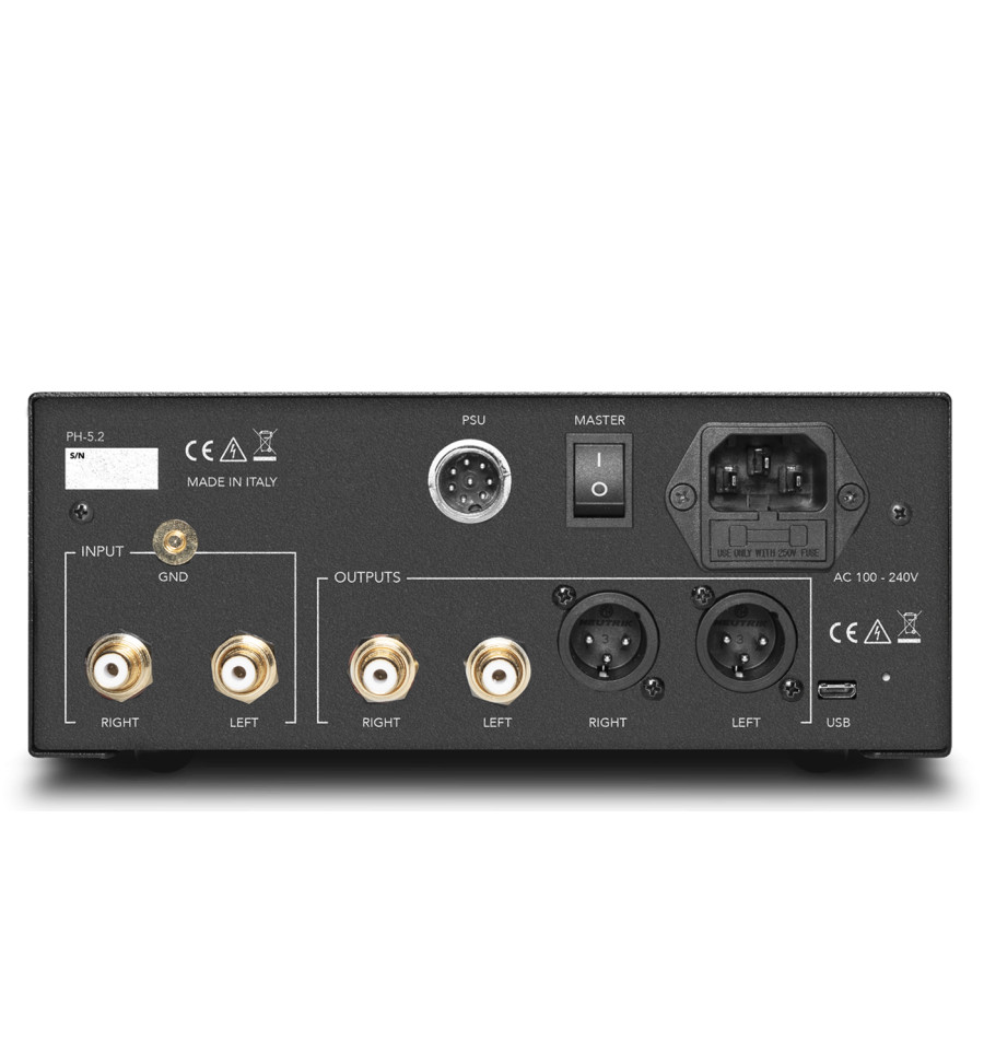 The color touchscreen interface offers a clearer layout, quick adjustments, and immediate access to all functions, allowing you to intervene in real time without interrupting playback, for a high-level user experience. The interface is complemented by a completely analog core: the PH-5.2’s audio signal path is built with discrete audio components and designed to reduce distances and minimize any potential interference. High-quality relays switch the settings selected via the display without introducing digital circuitry. Authentic analog purity preserves signal integrity and extracts even the smallest details recorded on the vinyl.